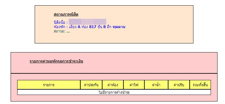5. หากมียอดค่าหอพักจะขึ้นดังรูป